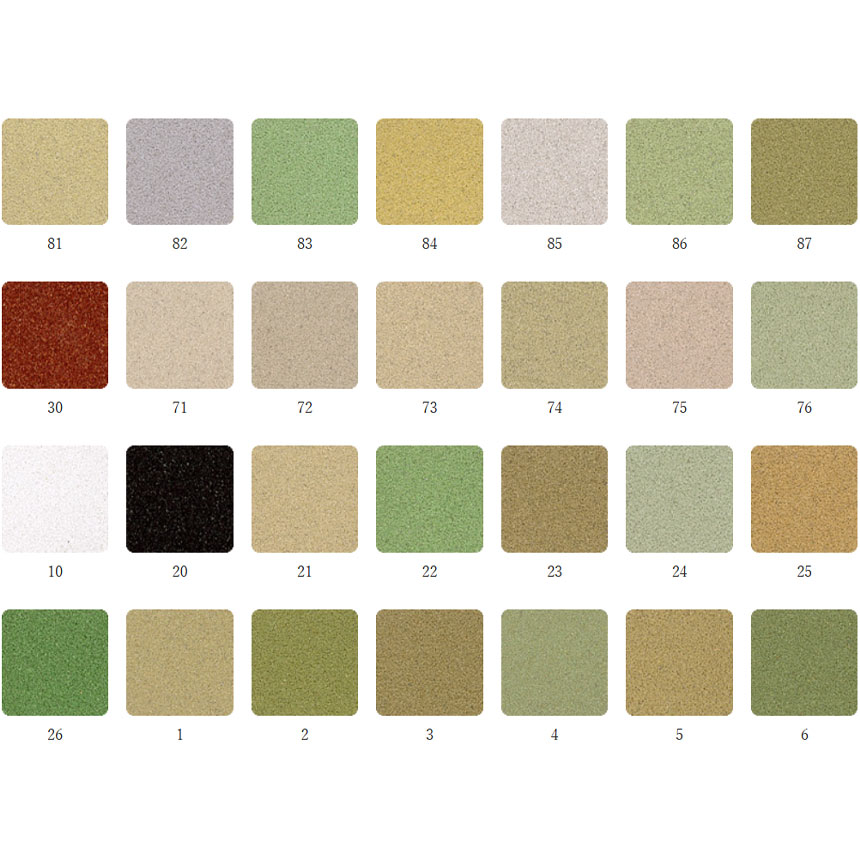 落ち着いたシックな色調から、明るい色調まで、様々なタイプの色数をそろえ、各種の部屋の内装用にご使用いただけます。不燃性でキズにもショックにも強い仕上がりとなり、変色・退色(色アセ)がありません。