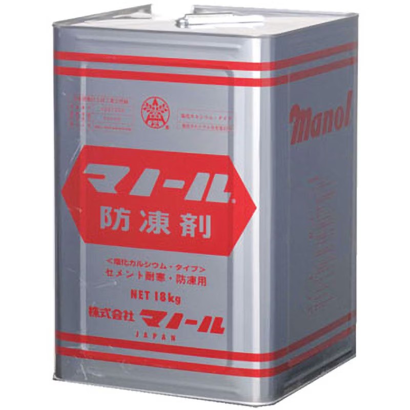 - マノール防凍剤は液状で、練り水に氷点降下作用を与えて不凍性にし、凍害を防止します。