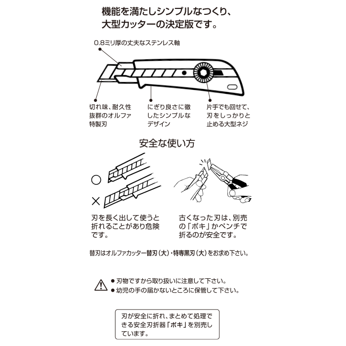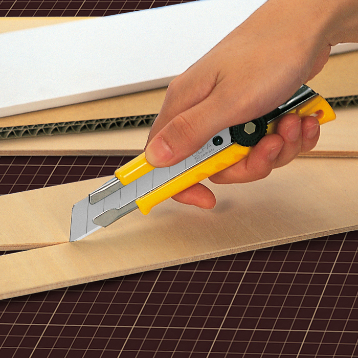大型カッターナイフの決定版。紙から薄手のベニヤ板まで切ることができる万能タイプ。