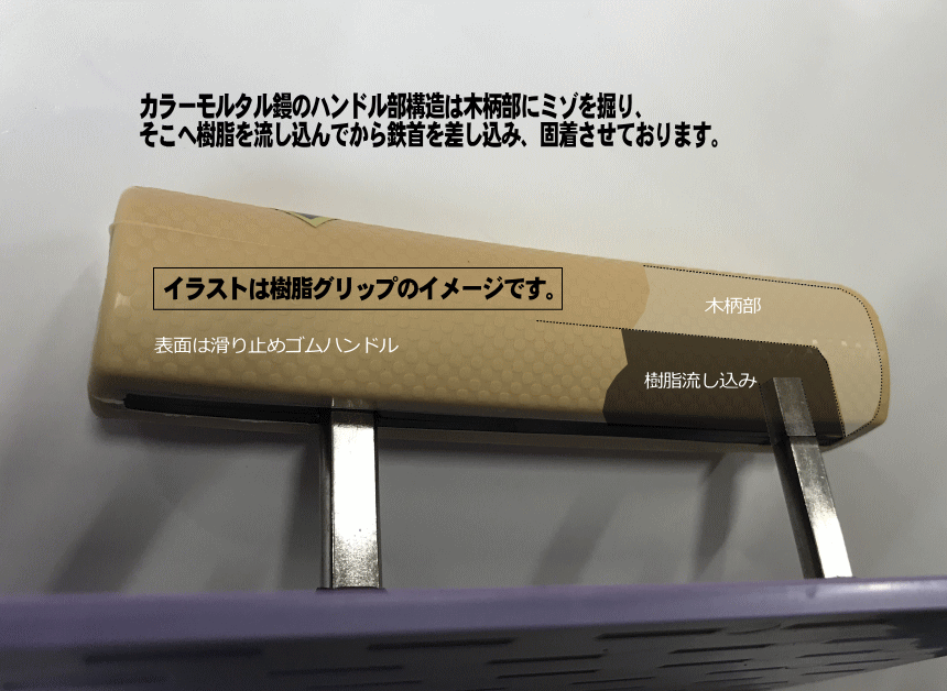 木柄に樹脂を流し込むことで柄の抜けを改善しました。