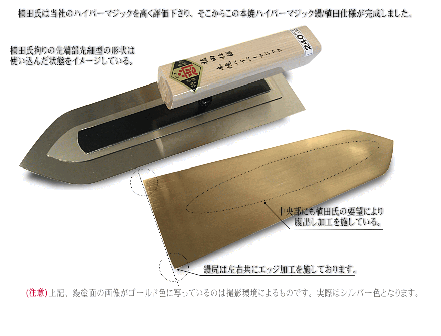 植田仕様 本焼ハイパーマジック鏝 左官鏝 仕上鏝